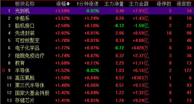 利好提振下,芯片产业链爆发。华维设计、锴威特、三超新材(300554)、大为股份(002213)等十余股涨停,蓝箭电子(301348)、科隆股份(300405)、龙芯中科均涨超10%。